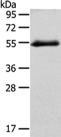 Gel: 8%SDS-PAGE, Lysate: 40 μg, Lane: Human placenta tissue, Primary antibody: CSB-PA933792(GLRA1 Antibody) at dilution 1/250 dilution, Secondary antibody: Goat anti rabbit IgG at 1/8000 dilution, Exposure time: 2 minutes