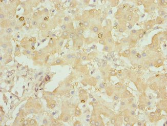 Immunohistochemistry of paraffin-embedded human liver tissue using CSB-PA009563ESR2HU at dilution of 1:100