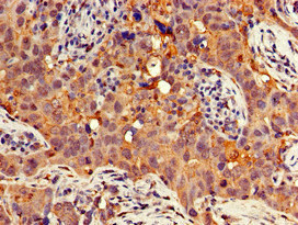 Immunohistochemistry of paraffin-embedded human pancreatic cancer using CSB-PA862056LA01HU at dilution of 1:100