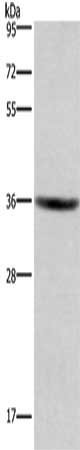 Gel: 8%SDS-PAGE, Lysate: 40 μg, Lane: HT29 cells, Primary antibody: CSB-PA257590(GPR171 Antibody) at dilution 1/400, Secondary antibody: Goat anti rabbit IgG at 1/8000 dilution, Exposure time: 3 minutes