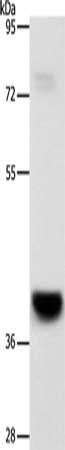 Gel: 8%SDS-PAGE, Lysate: 40 μg, Lane: Mouse liver tissue, Primary antibody: CSB-PA181048(GPR182 Antibody) at dilution 1/1000, Secondary antibody: Goat anti rabbit IgG at 1/8000 dilution, Exposure time: 8 minutes