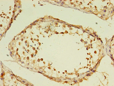 Immunohistochemistry of paraffin-embedded human testis tissue using CSB-PA009925LA01HU at dilution of 1:100