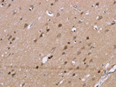 The image on the left is immunohistochemistry of paraffin-embedded Human brain tissue using CSB-PA962258(GSN Antibody) at dilution 1/40, on the right is treated with synthetic peptide. (Original magnification: ×200)