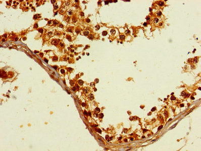 Immunohistochemistry of paraffin-embedded human testis tissue using CSB-PA010001HA01HU at dilution of 1:100