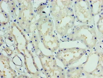 Immunohistochemistry of paraffin-embedded human kidney tissue using CSB-PA010014EA01HU at dilution of 1:100