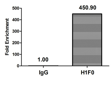 Chromatin Immunoprecipitation Hela (4*106) were treated with Micrococcal Nuclease, sonicated, and immunoprecipitated with 5µg anti-H1F0 (CSB-PA010087OA81nme1HU) or a control normal rabbit IgG. The resulting ChIP DNA was quantified using real-time PCR with primers against the β-Globin promoter.