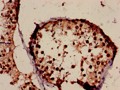 Immunohistochemistry of paraffin-embedded human testis tissue using CSB-PA01435A0Rb at dilution of 1:100