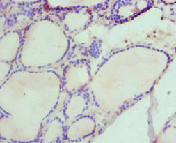 Immunohistochemistry of paraffin-embedded human thyroid tissue using CSB-PA010142ESR1HU at dilution of 1:100