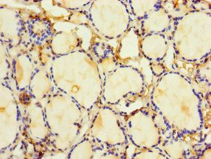 Immunohistochemistry of paraffin-embedded human thyroid tissue using CSB-PA17869A0Rb at dilution of 1:100