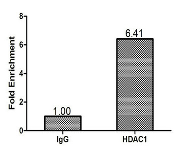 Chromatin Immunoprecipitation MCF-7 (1.1*106) were cross-linked with formaldehyde, sonicated, and immunoprecipitated with 4μg anti-HDAC1 or a control normal rabbit IgG. The resulting ChIP DNA was quantified tissue using real-time PCR with primers (CSB-PP17869HU) against the P21 promoter.
