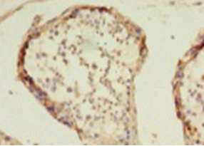 Immunohistochemistry of paraffin-embedded human testis tissue using CSB-PA17869A0Rb at dilution of 1: 100