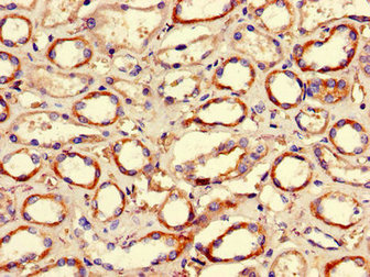 Immunohistochemistry of paraffin-embedded human kidney tissue using CSB-PA010236LA01HU at dilution of 1:100