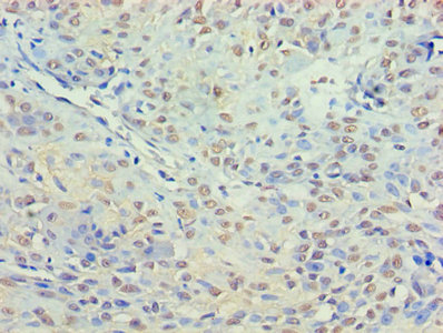 Immunohistochemistry of paraffin-embedded human breast cancer using CSB-PA010239LA01HU at dilution of 1:100