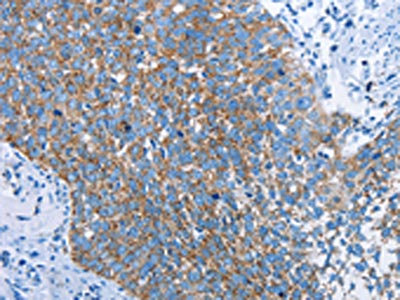 The image on the left is immunohistochemistry of paraffin-embedded Human cervical cancer tissue using CSB-PA955413(HINT2 Antibody) at dilution 1/40, on the right is treated with fusion protein. (Original magnification: ×200)