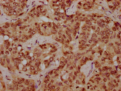 IHC image of CSB-PA010378OA116nhibHU diluted at 1:10 and staining in paraffin-embedded human liver cancer performed on a Leica BondTM system. After dewaxing and hydration, antigen retrieval was mediated by high pressure in a citrate buffer (pH 6.0). Section was blocked with 10% normal goat serum 30min at RT. Then primary antibody (1% BSA) was incubated at 4°C overnight. The primary is detected by a biotinylated secondary antibody and visualized using an HRP conjugated SP system.