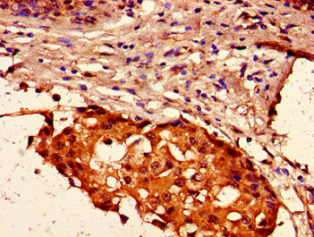 Immunohistochemistry of paraffin-embedded human breast cancer using CSB-PA010389PA125ncrHU at dilution of 1:100