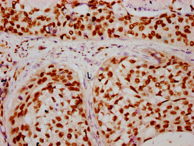 IHC image of CSB-PA010403OA16ncrHU diluted at 1:20 and staining in paraffin-embedded human cervical cancer performed on a Leica BondTM system. After dewaxing and hydration, antigen retrieval was mediated by high pressure in a citrate buffer (pH 6.0). Section was blocked with 10% normal goat serum 30min at RT. Then primary antibody (1% BSA) was incubated at 4°C overnight. The primary is detected by a biotinylated secondary antibody and visualized using an HRP conjugated SP system.