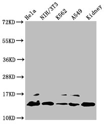 Positive WB detected in: Hela whole cell lysate, NIH/3T3 whole cell lysate, K562 whole cell lysate, A549 whole cell lysate, Rat kidney tissue