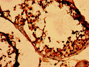 Immunohistochemistry of paraffin-embedded human testis tissue using CSB-PA010411LA01HU at dilution of 1:100