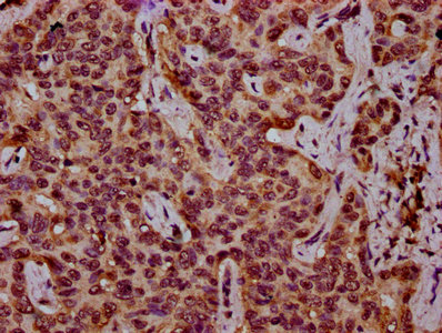IHC image of CSB-PA010418OA27nhibHU diluted at 1:10 and staining in paraffin-embedded human liver cancer performed on a Leica BondTM system. After dewaxing and hydration, antigen retrieval was mediated by high pressure in a citrate buffer (pH 6.0). Section was blocked with 10% normal goat serum 30min at RT. Then primary antibody (1% BSA) was incubated at 4°C overnight. The primary is detected by a biotinylated secondary antibody and visualized using an HRP conjugated SP system.