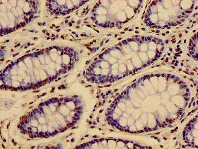 Immunohistochemistry of paraffin-embedded human colon cancer using CSB-PA010418PA36nme3HU at dilution of 1:100