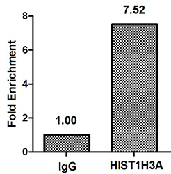 • Chromatin Immunoprecipitation Hela (4*106) were treated with Micrococcal Nuclease, sonicated, and immunoprecipitated with 8µg anti-HIST1H3A (CSB-PA010418OA36nme3HU) or a control normal rabbit IgG. The resulting ChIP DNA was quantified using real-time PCR with primers against the β-Globin promoter.