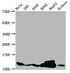 Positive WB detected in: Hela whole cell lysate, 293 whole cell lysate, A549 whole cell lysate, K562 whole cell lysate, HepG2 whole cell lysate, Mouse kidney tissue