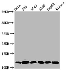 Positive WB detected in: Hela whole cell lysate, 293 whole cell lysate, A549 whole cell lysate, K562 whole cell lysate, HepG2 whole cell lysate, Mouse kidney tissue