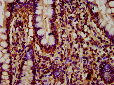 IHC image of CSB-PA010429OA77nme1HU diluted at 1:5 and staining in paraffin-embedded human small intestine tissue performed on a Leica BondTM system. After dewaxing and hydration, antigen retrieval was mediated by high pressure in a citrate buffer (pH 6.0). Section was blocked with 10% normal goat serum 30min at RT. Then primary antibody (1% BSA) was incubated at 4°C overnight. The primary is detected by a biotinylated secondary antibody and visualized using an HRP conjugated SP system.
