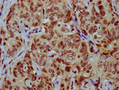IHC image of CSB-PA010429OA77nsucHU diluted at 1:20 and staining in paraffin-embedded human liver cancer performed on a Leica BondTM system. After dewaxing and hydration, antigen retrieval was mediated by high pressure in a citrate buffer (pH 6.0). Section was blocked with 10% normal goat serum 30min at RT. Then primary antibody (1% BSA) was incubated at 4°C overnight. The primary is detected by a biotinylated secondary antibody and visualized using an HRP conjugated SP system.