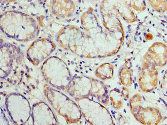 Immunohistochemistry of paraffin-embedded human gastric cancer using CSB-PA744479HA01HU at dilution of 1: 100