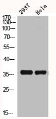 免疫原:Synthesized peptide derived from the N-terminal region of Human BRAF35.