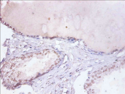 Immunohistochemistry of paraffin-embedded human prostate tissue using CSB-PA02544A0Rb at dilution of 1:100