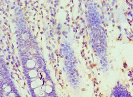 Immunohistochemistry of paraffin-embedded human colon tissue using CSB-PA010647DSR1HU at dilution of 1:100