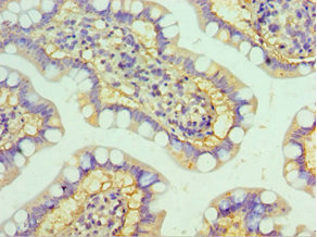 Immunohistochemistry of paraffin-embedded human small intestine tissue using CSB-PA010920ESR2HU at dilution of 1:100