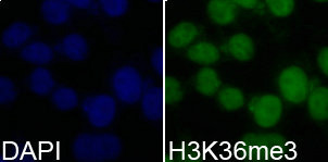 免疫原:A synthetic tri-methylated peptide corresponding to residues surrounding K36of Human histone H3