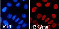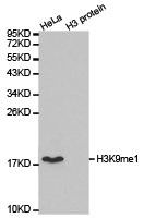 免疫原:A synthetic methylated peptide corresponding to residues surrounding K9 of Human histone H3