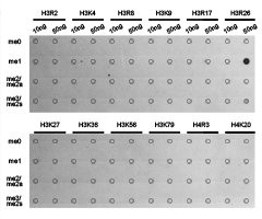免疫原:A synthetic methylated peptide corresponding to residues surrounding R26 of Human histone H3