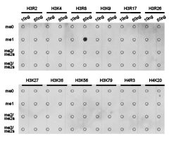 免疫原:A synthetic methylated peptide corresponding to residues surrounding R8 of Human histone H3