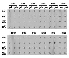 免疫原:A synthetic peptide corresponding to the amino terminus of histone H4 in which Arg3 is mono-methylated.