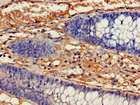 Immunohistochemistry of paraffin-embedded human colon cancer using CSB-PA010989EA01HU at dilution of 1:100