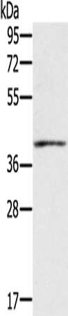 Gel: 8%SDS-PAGE, Lysate: 60 μg, Lane: Mouse muscle tissue, Primary antibody: CSB-PA149561(IFNGR2 Antibody) at dilution 1/200, Secondary antibody: Goat anti rabbit IgG at 1/8000 dilution, Exposure time: 1 minute