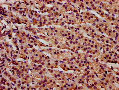 IHC image of CSB-PA842756LA01HU diluted at 1:300 and staining in paraffin-embedded human adrenal gland tissue performed on a Leica BondTM system. After dewaxing and hydration, antigen retrieval was mediated by high pressure in a citrate buffer (pH 6.0). Section was blocked with 10% normal goat serum 30min at RT. Then primary antibody (1% BSA) was incubated at 4°C overnight. The primary is detected by a biotinylated secondary antibody and visualized using an HRP conjugated SP system.