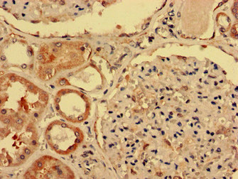 Immunohistochemistry analysis of human kidney tissue using CSB-PA011113LA01HU at dilution of 1:100