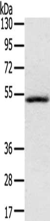 Gel: 8%SDS-PAGE, Lysate: 40 μg, Lane: Human normal liver tissue, Primary antibody: CSB-PA121041(IL17RB Antibody) at dilution 1/200, Secondary antibody: Goat anti rabbit IgG at 1/8000 dilution, Exposure time: 1 minute