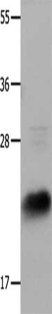 Gel: 12%SDS-PAGE, Lysate: 30 μg, Lane: Hela cells, Primary antibody: CSB-PA634259(IL18 Antibody) at dilution 1/1350, Secondary antibody: Goat anti rabbit IgG at 1/8000 dilution, Exposure time: 5 seconds
