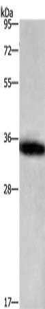 Gel: 10%SDS-PAGE, Lysate: 40 μg, Lane: Mouse testis tissue, Primary antibody: CSB-PA825267(IL1B Antibody) at dilution 1/100, Secondary antibody: Goat anti rabbit IgG at 1/8000 dilution, Exposure time: 1 second