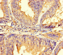 Immunohistochemistry of paraffin-embedded human endometrial cancer using CSB-PA889191LA01HU at dilution of 1:100