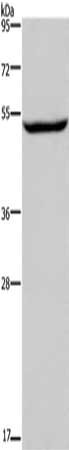Gel: 8%SDS-PAGE, Lysate: 40 μg, Lane: Raji cells, Primary antibody: CSB-PA297207(IMPDH1 Antibody) at dilution 1/450, Secondary antibody: Goat anti rabbit IgG at 1/8000 dilution, Exposure time: 1 minute