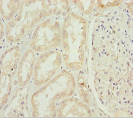 Immunohistochemistry of paraffin-embedded human kidney tissue using CSB-PA866277ESR2HU at dilution of 1:100